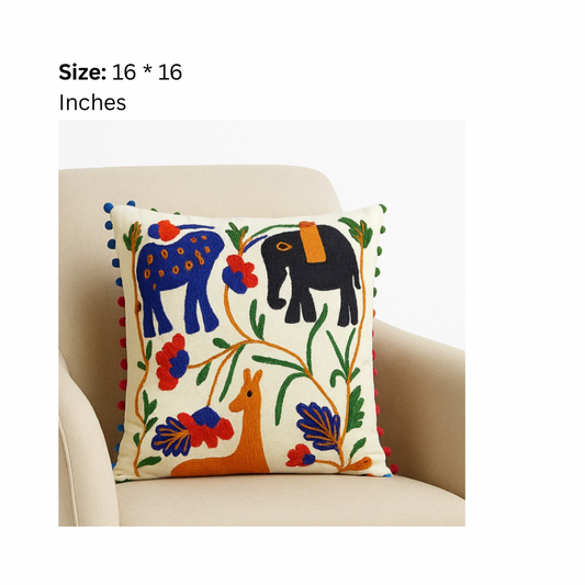 Nature Folk Embroidered Cushion Cover