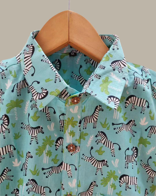 Blue Zebra print cotton shirt